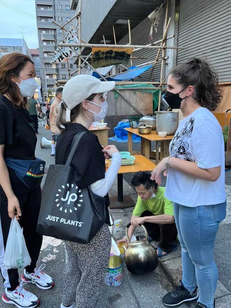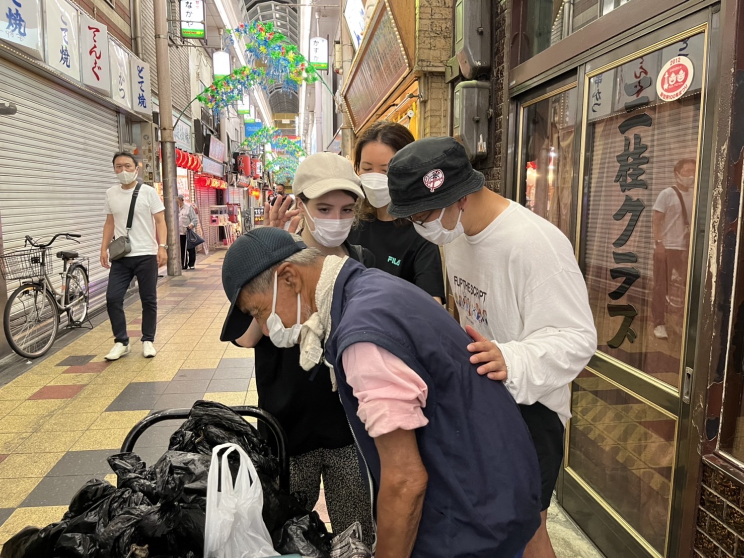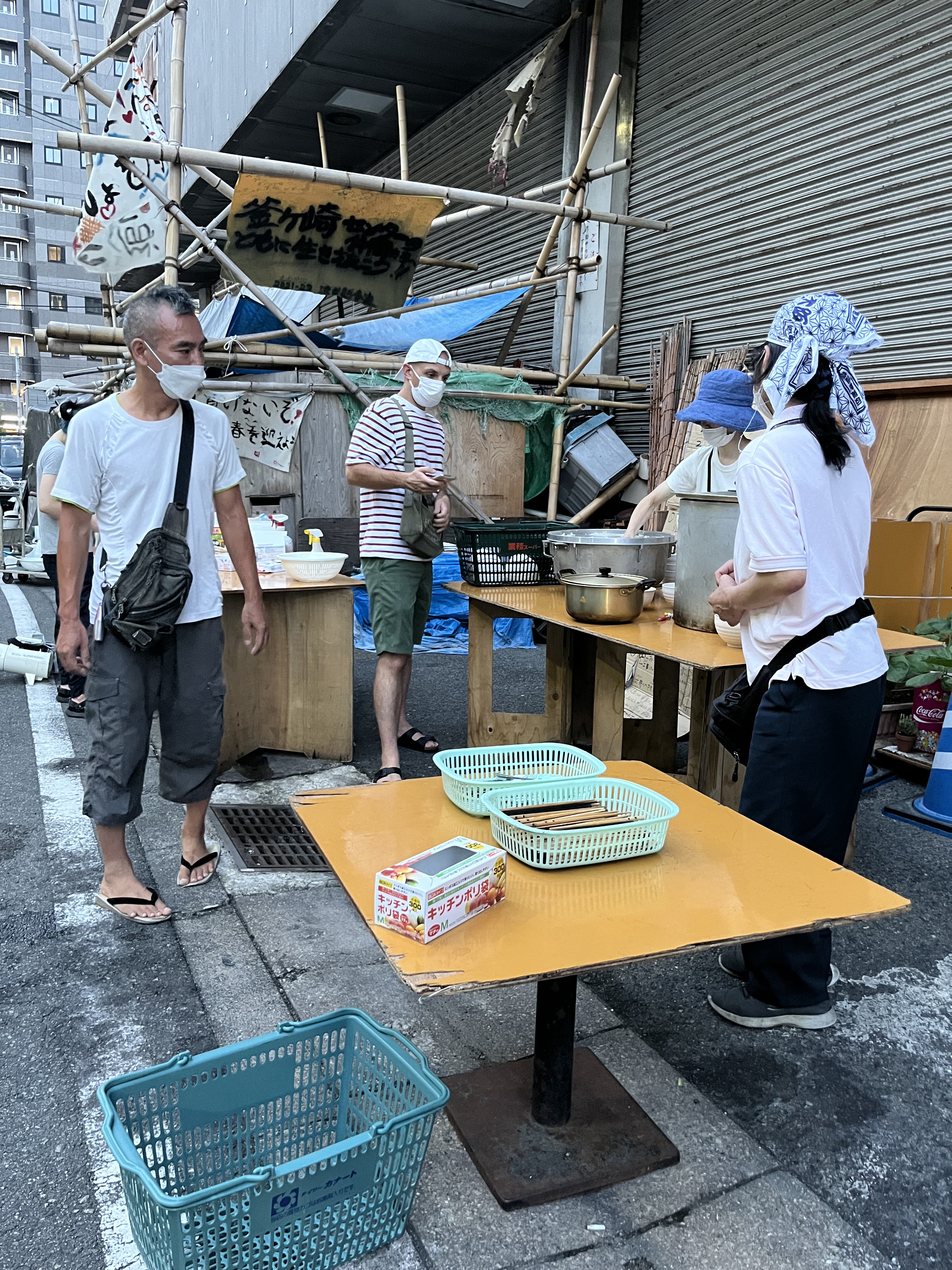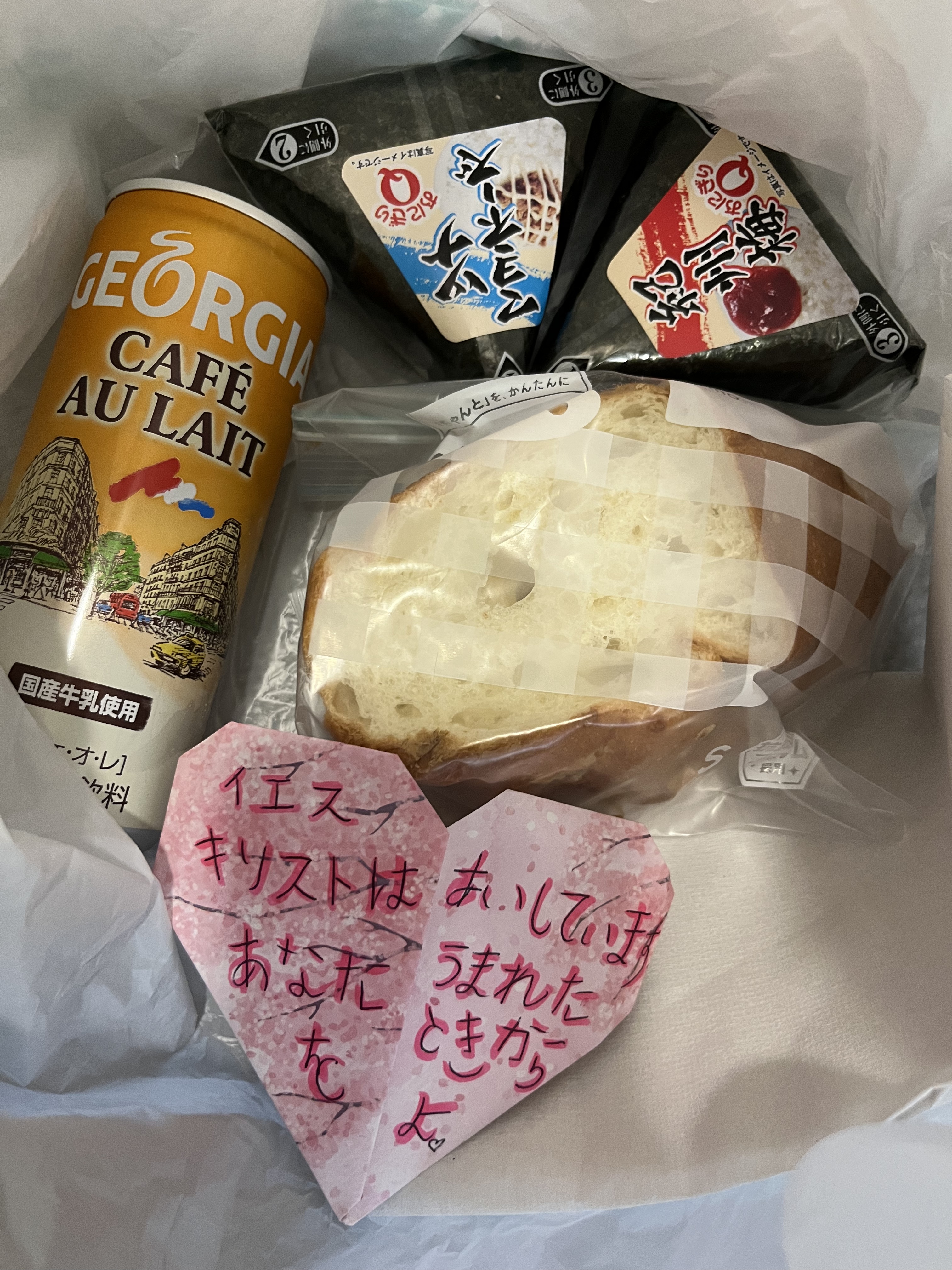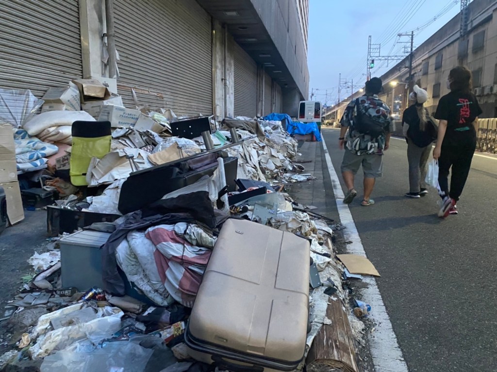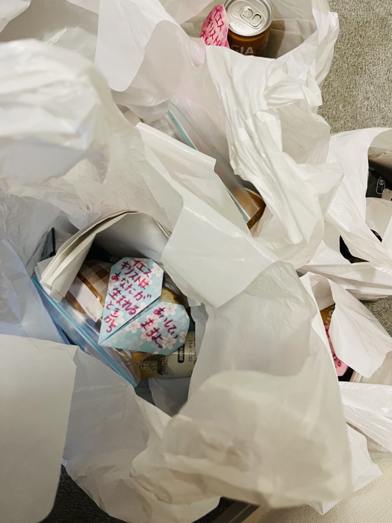 As we walk around the area of Nishinari, we are led by the Holy Spirit and ask God to lead us in encounters with those that need a touch from Jesus! We were able to pray for the sick and homeless, feed the hungry and exhausted day laborers, and make connections with a non-faith based, local outreach organization. This day, we passed out 6 care packages to the homeless! These care packages included a meal of two rice balls filled with various meat and vegetable fillings, bread, coffee, water and also an origami Christian tract that I handmade.