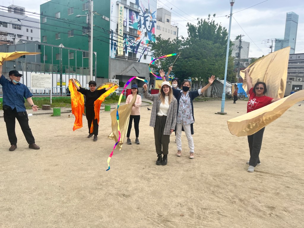 I had the amazing opportunity to be contacted by a Singaporean Ministry who specializes in deliverance, evangelism and flag dance worshipping! They contacted me and asked me to organize a mission outreach day, for their hearts were also towards the lost and broken souls found in Nishinari where I am sent to minister. The Lord once again sent co-laborer’s of the faith to come to Nishinari as they brought their flag dance worship ministry and hearts of gold to serve the King! I am so grateful for this divine connection and much fruit was made from this experience. The Lord supplies! It was truly amazing to coordinate together cross-culturally and minister together as one body of Christ. Their flag dance ministry, combined with my outreach ministry worked effectively and a 70 year old man, by the grace of God, gave His life to Christ that day! Not only that, but many Nishinari homeless joined in on our worship and praised God with us! It was incredible to witness and be able to minister in this way. I prepared outreach bags filled with food, water, sanitary supplies, as well as made homemade origami tracts that I and the others used as a means to start conversations with the homeless and we were able to share the gospel with more than 30 people! I thank the Lord for the 70 year old man’s salvation! Please enjoy the pictures below and praise God with me for the work He is continually doing through this ministry!