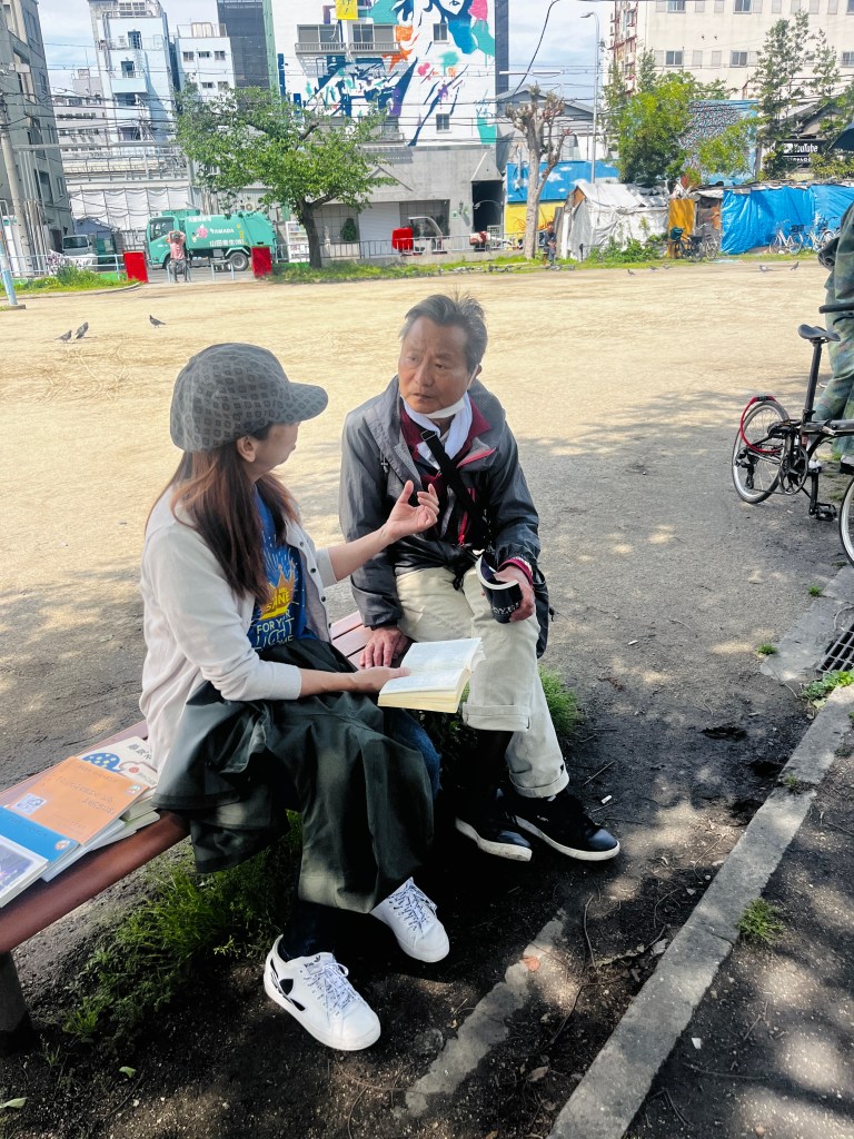 Every week in the local park, there is a church ministry I partner with where we evangelize, spread Jesus’ Word and just love on the Japanese people of Nishinari that are affected by homelessness and drug addiction. Today, we ministered to over 30 Japanese, shared the gospel and encouraged all who were there! It’s a time where Japanese Christians as well as other local missionaries play worship music, distribute Bibles (as well as other Biblical texts) share the Good News, pray for the homeless and where we just spend time together, forming relationships and caring for them.