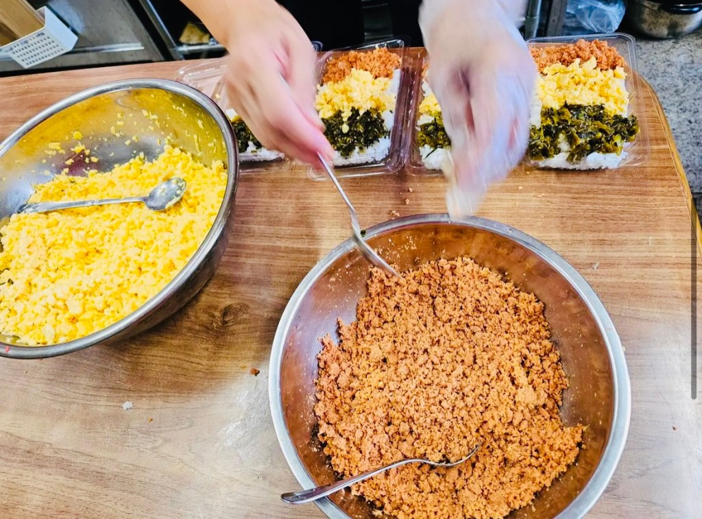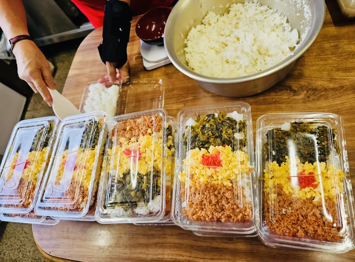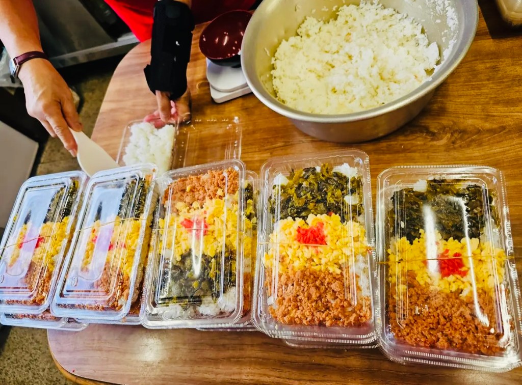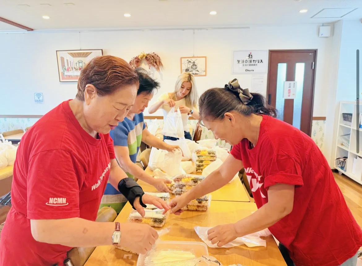 On a bright and sunny Saturday morning, we gathered at our church and assembled 70 lunch boxes for the homeless of Nishinari! These were not just any simple lunch boxes either! They were hand-made with love and filled with chicken, beef, fish, egg, a variety of different vegetables and other items such as bread and snacks were also included in the bags! These lunch boxes or “bento boxes” as the Japanese call them, were made and packed thoughtfully; designed to provide the homeless with not only proper nutrition, but additionally are full of bulky-foods so that they can be satiated for a long time (and hopefully gain some weight and improve their health in the process)!
