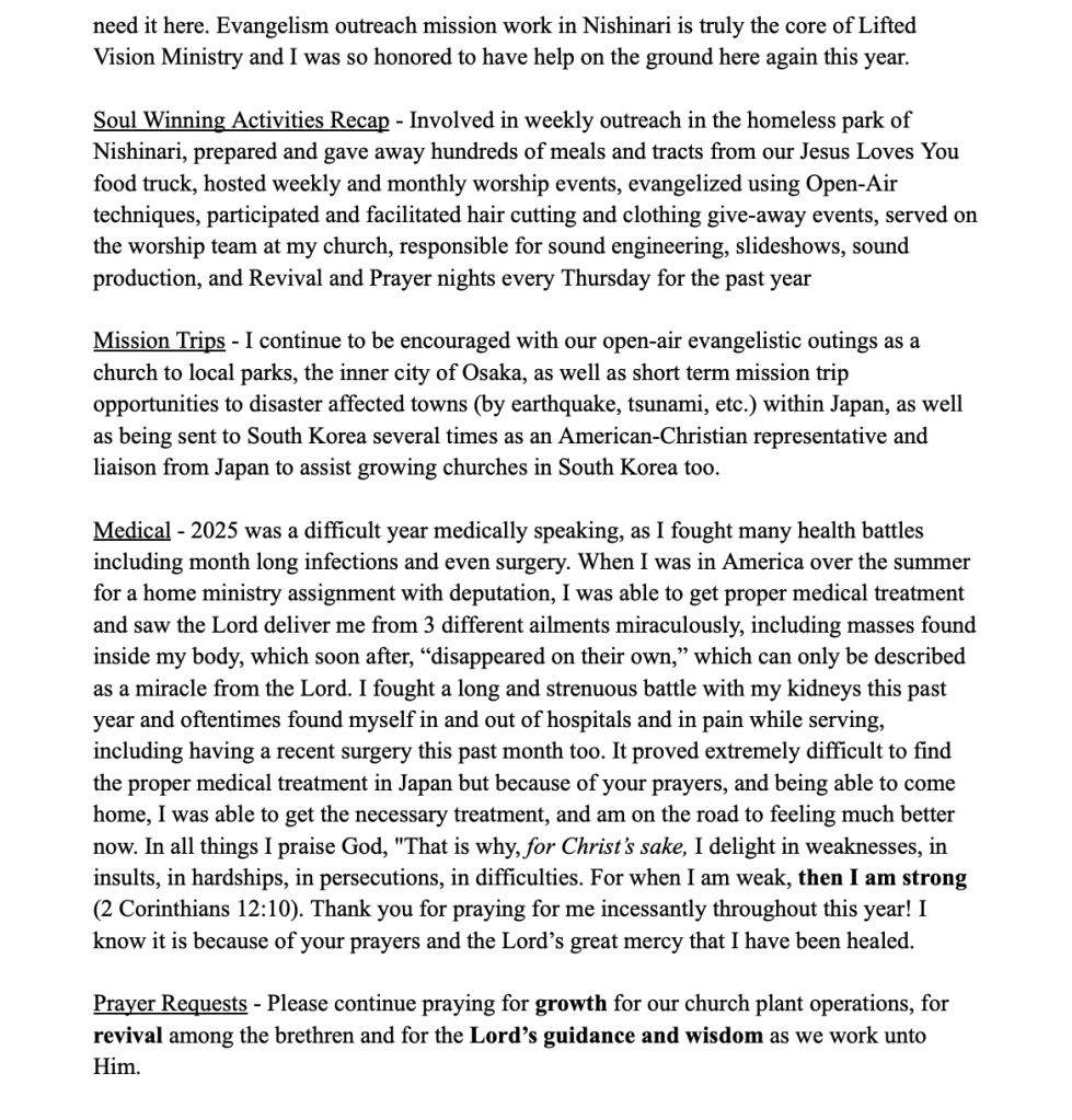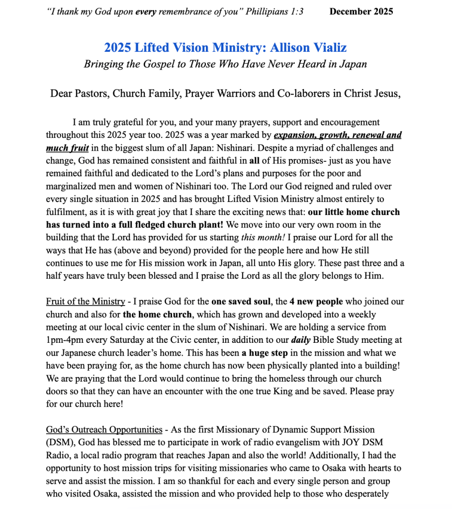 Links to Give and Support Mission Work in Nishinari, Japan: