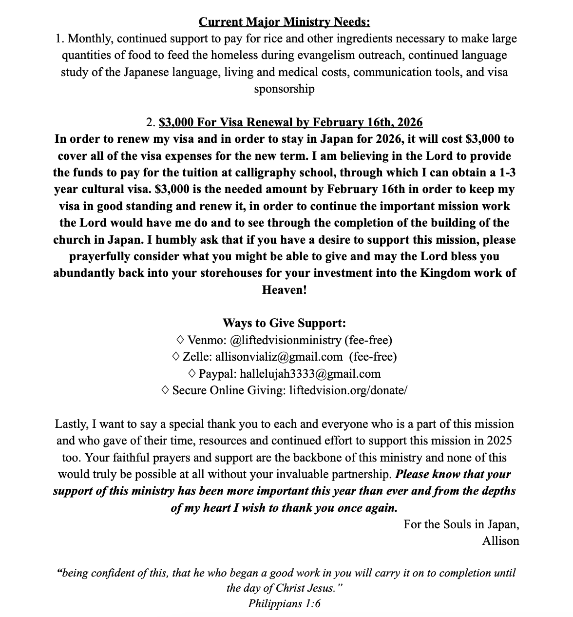 ♢ Venmo: @liftedvisionministry ♢